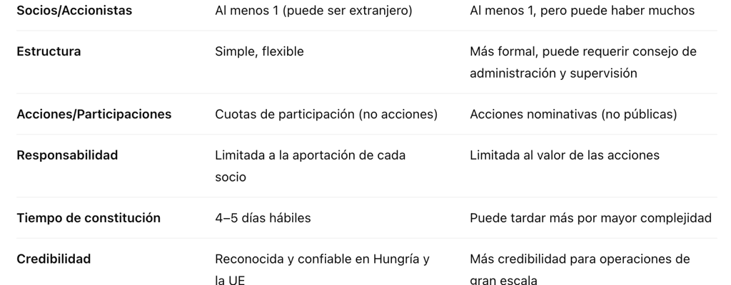 Elige una Zrt si planeas atraer inversores, emitir acciones o escalar rápidamente con una estructura más corporativa.